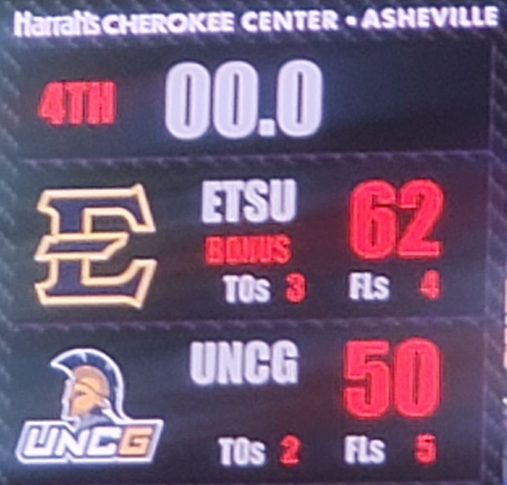 End of 3rd, ETSU leads 49 – 38. After falling behind 12 -0, the Bucs have taken care of business !