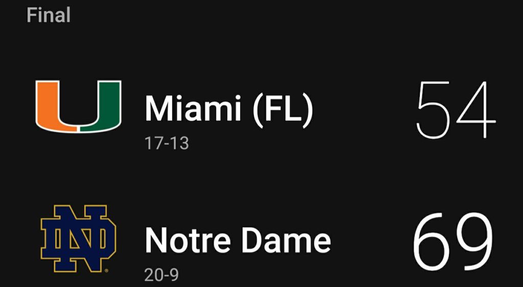 Game#2- Miami vs. Notre Dame. I’m going with the High Scoring Offense of the “Fighting Irish” to send Miami further South π€
