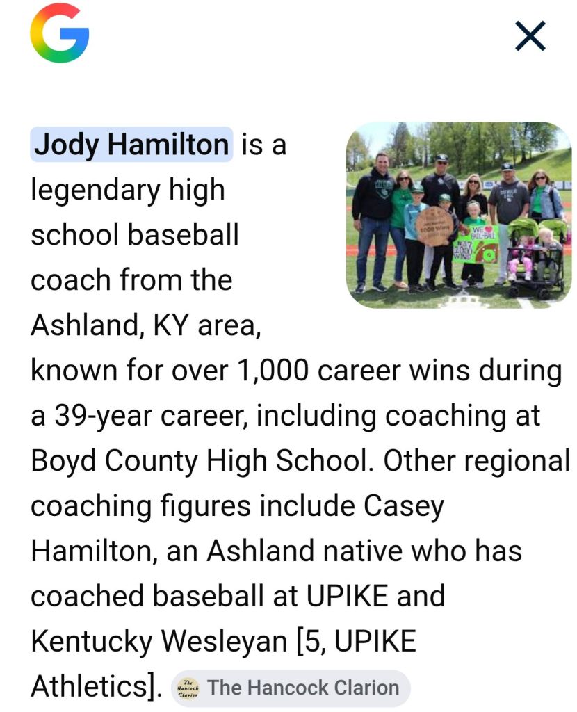 Hamilton comes from Baseball βΎοΈ royalty as the Son of a High School baseball coach with over 1,000 wins in the Ashland, Kentucky area. Solid individual who represents our game well