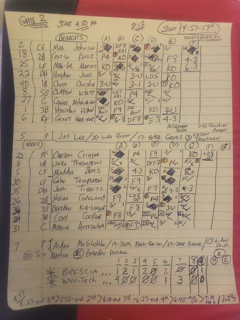 In the opener, we entered the bottom of the ninth trailing 13 – 8. No problem, Tyler Mackey delivered a pinch hit two run single to make it 13 – 13 before Brescia recorded the 27th out. In this one what followed was one scoreless inning before the Bearcats plated one in the top of the 11th.