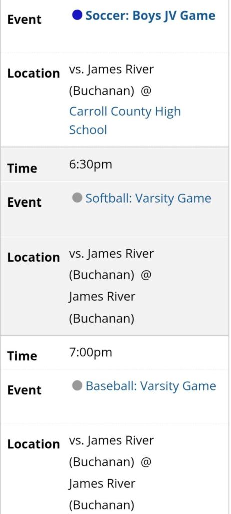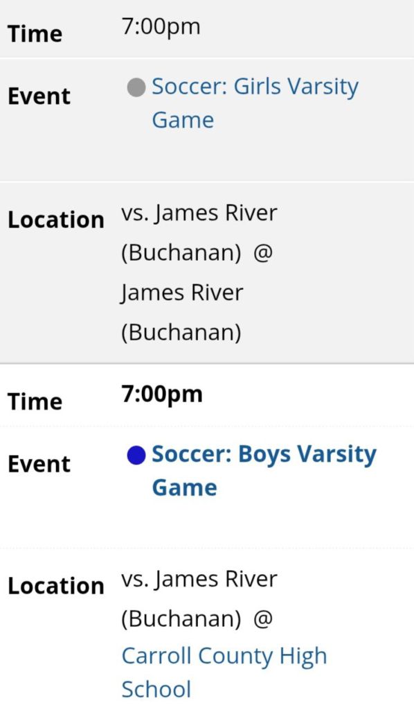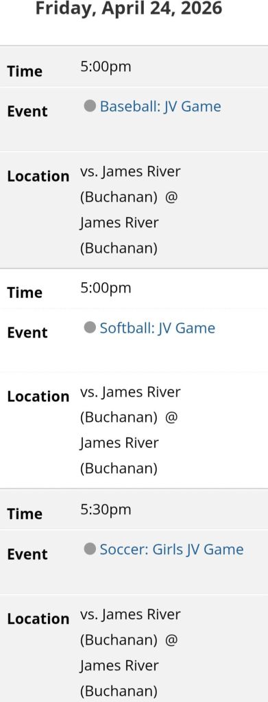 Next up for Carroll County Junior Varsity Cavaliers is a game at James River Junior Varsity Knights on Friday.