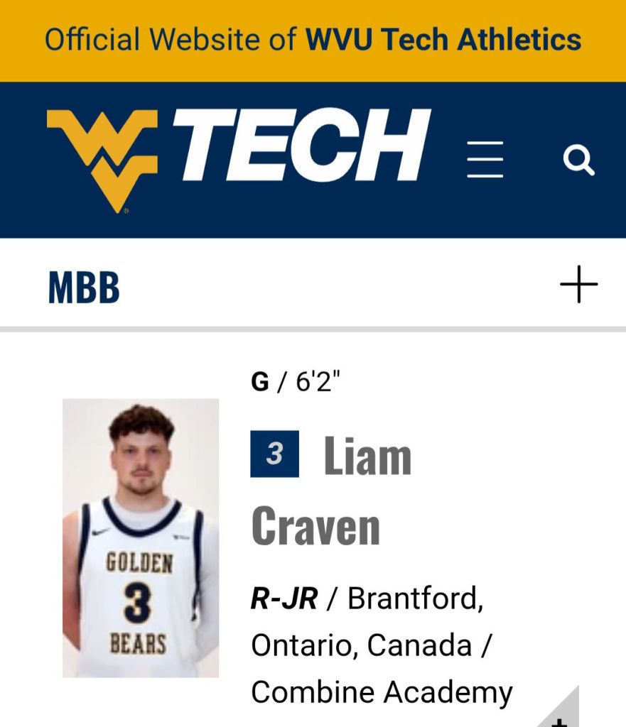 Liam Craven plays on the WVU-T Basketball team, and today, he is responsible for the schools live feed of the games. Craven is from Canada π¨π¦, sharp as can be, and handles the technology of our team. His favorite basketball player is Kevin Durant of the Houston Rockets π. Sports management as his major !