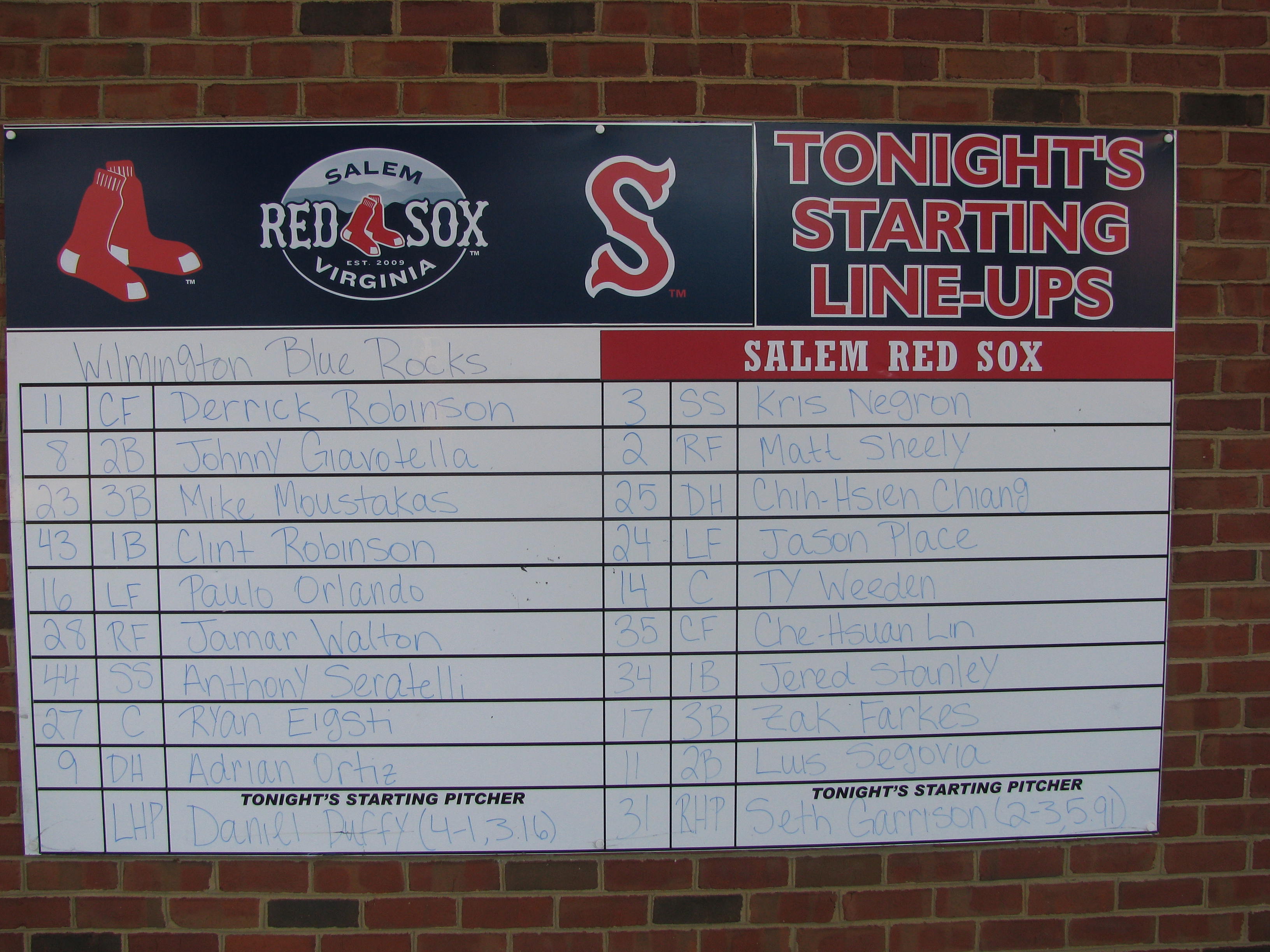 We will have the line up board Opening Day !