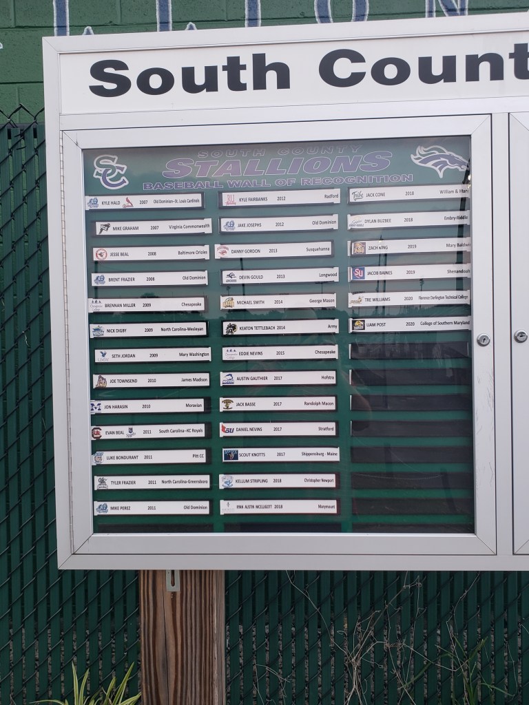 Earlier in the Trek Around the Dominion I was able to catch up with the South County Braves when they were playing in Alexandria against Cal Ripken Collegiate League rival Aces. The tour officially ended a few minutes ago when the Ball Coach and I toured the grounds where the Stallions call home during the High School season.