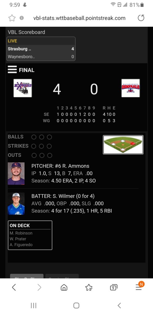 Shortly before the clock struck 10pm the Strasburg Express closed out the Waynesboro Generals 4-0 to complete a Perfect 6-0 run through the 2021 Valley Baseball βΎοΈ League playoffs.