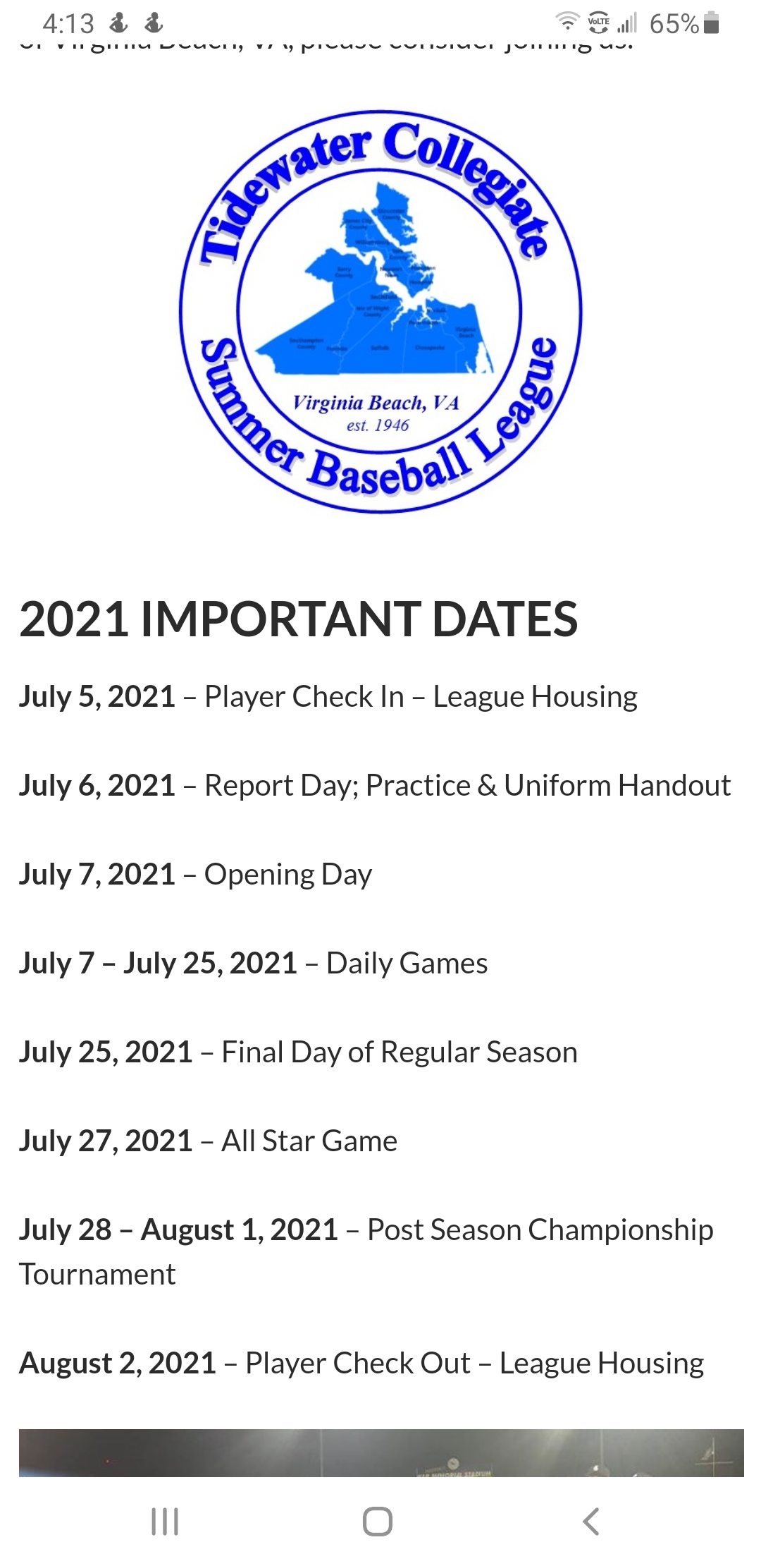 It turns out that we need to add four teams to our total as the Tidewater Collegiate Summer Baseball League has been playing games for over 70 years. This league has a couple of rather unique twists in that all games are played nightly on four fields within a few miles of each other and any players that are not local are housed in Beautiful Virginia Beach.
