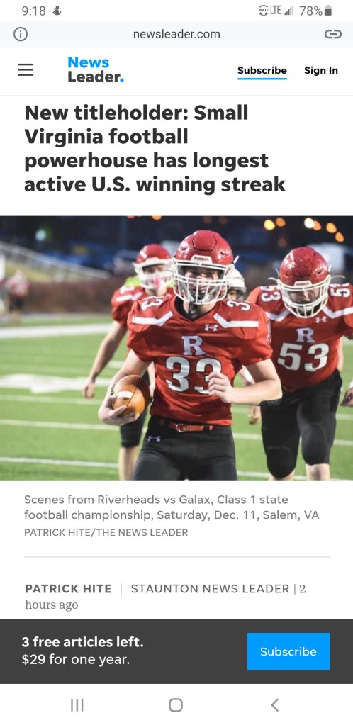 The last team to defeat RHS was the same Galax squad, 6+ seasons ago by the narrowest of margins 7-6.