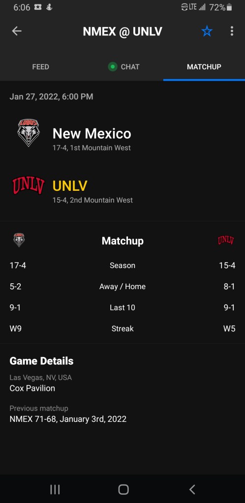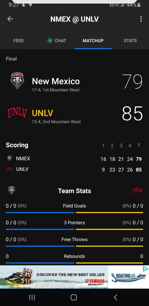 At the break its New Mexico 34, UNLV 32. The second half promises to be entertaining !