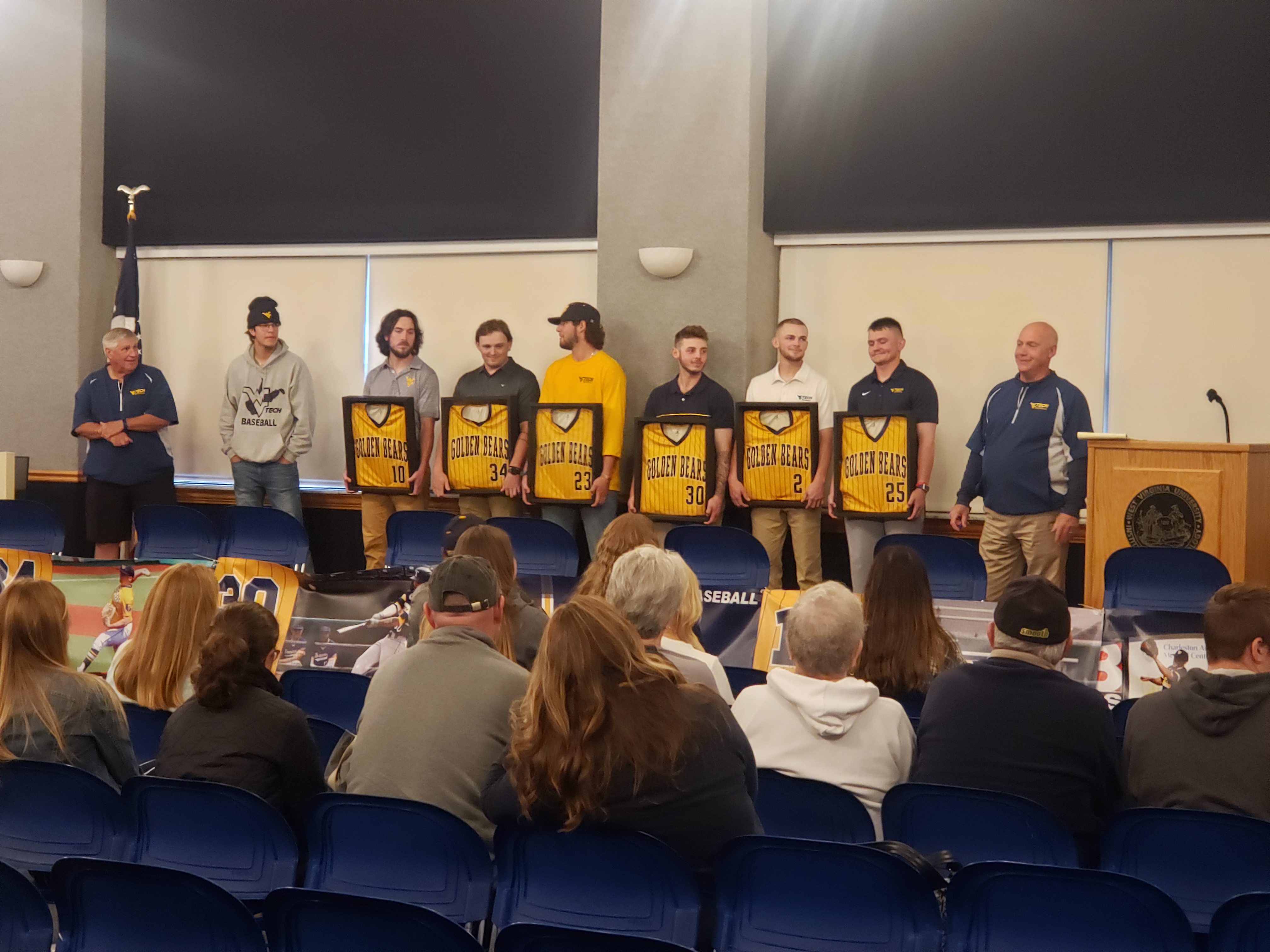 Rain washed out the scheduled twin bill against the visiting Red Storm at Woodrow Wilson High School but the Golden Bears 🐻 Celebration shifted to an auditorium for the first time and the transition was made flawlessly.