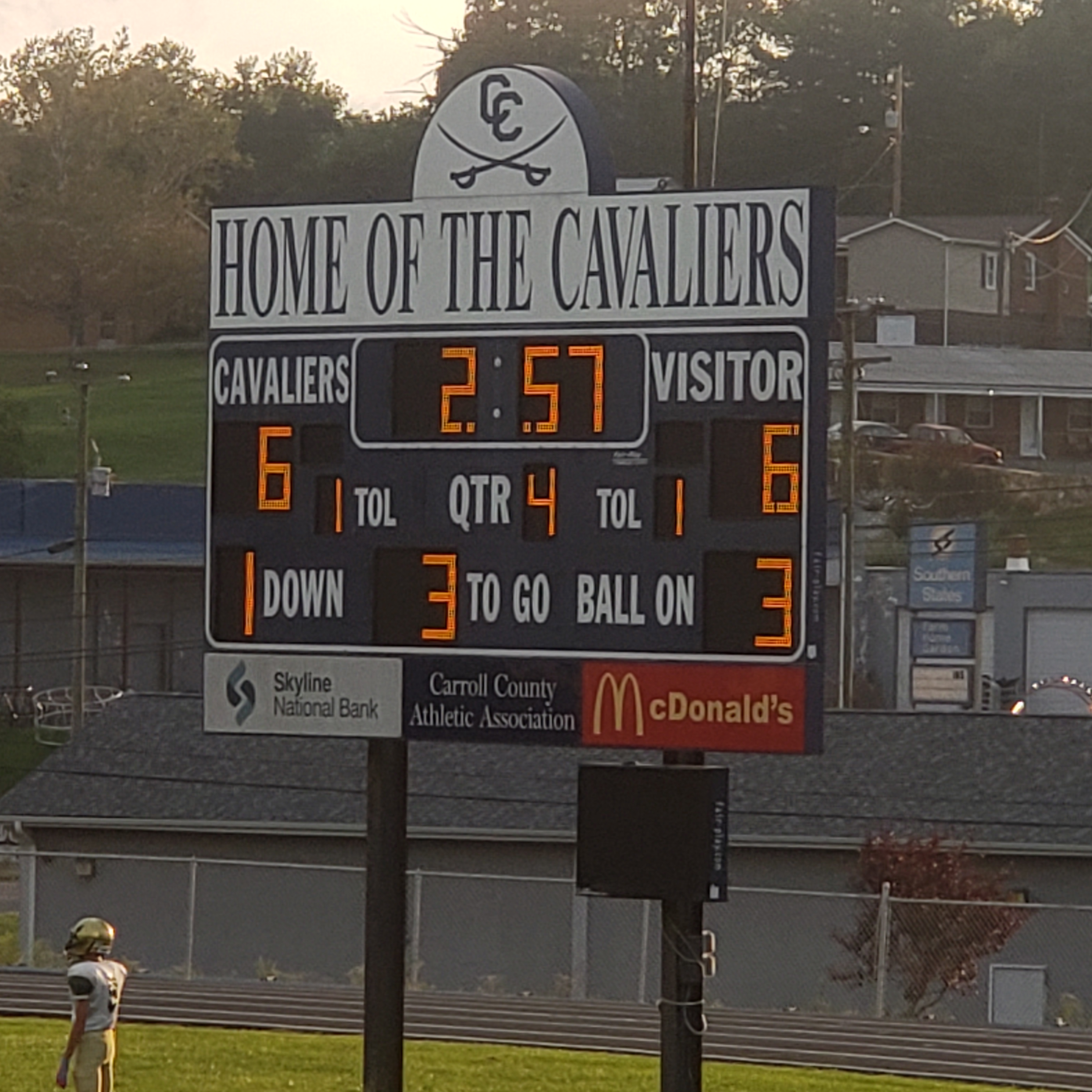 Following another defensive stand, the Cavs once again entered the red zone just before Halftime. CCHS has used all three of its timeouts and now face a 3rd and goal from the 6 with 0:25.4 remaining.