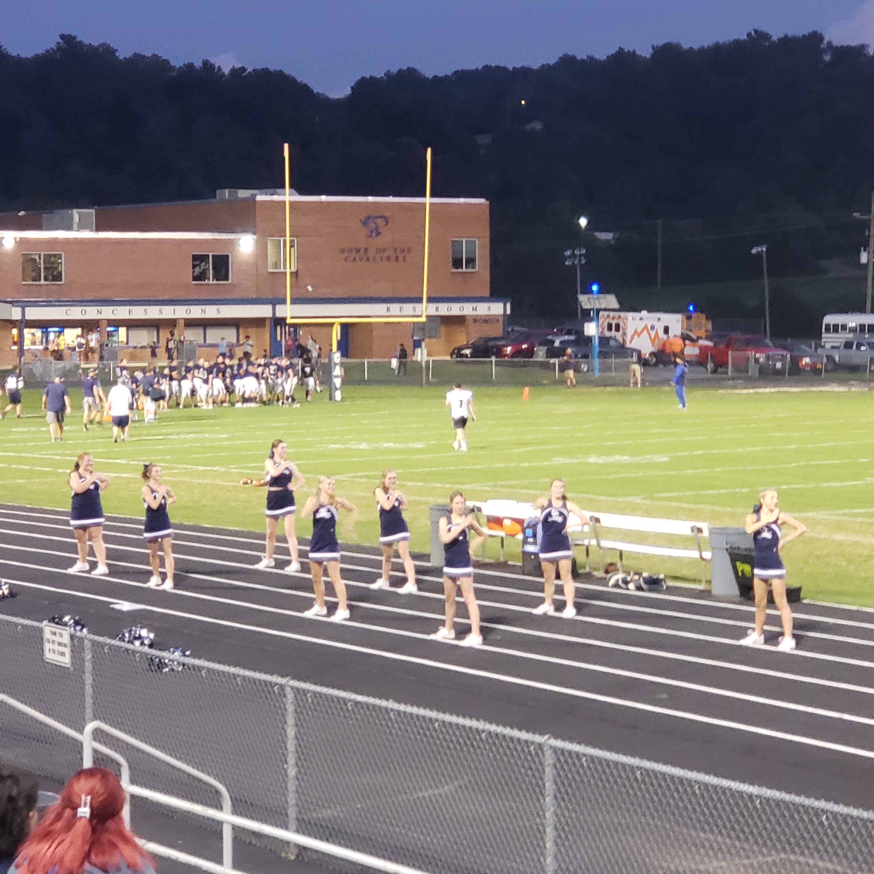 . The JV Cheer squad entertaining the crowd at the 10:00 minute break. Opening night 🌙 for everyone.