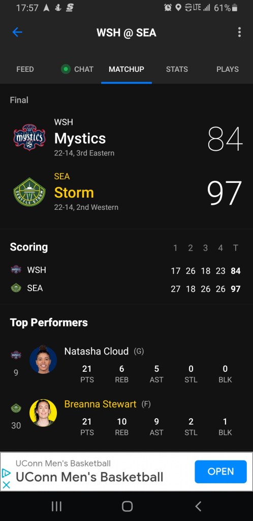 A quick tip of the Cap to Sue Bird as her Storm advance to the WNBA semifinals, extending her career for another week.