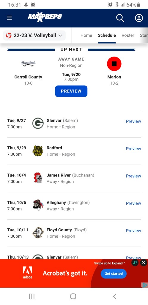Two of the top teams in 3A Volleyball are set to square off for a second time this season when Carroll County (10-0) travels down Interstate 81 to face Marion (10-2).