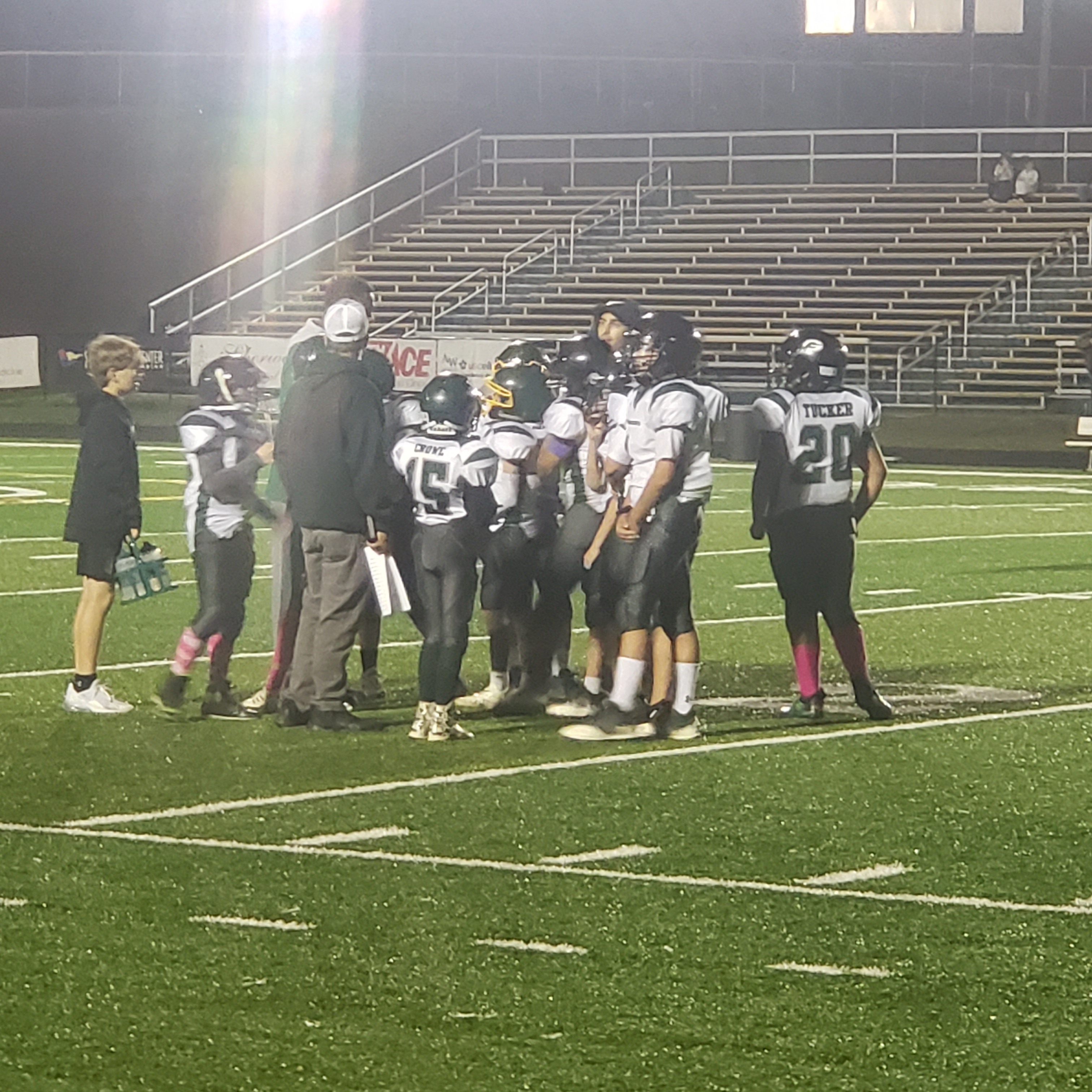 12 and Under Rec League (Roanoke County) were playing football under the bright lights when I departed from the Gym.