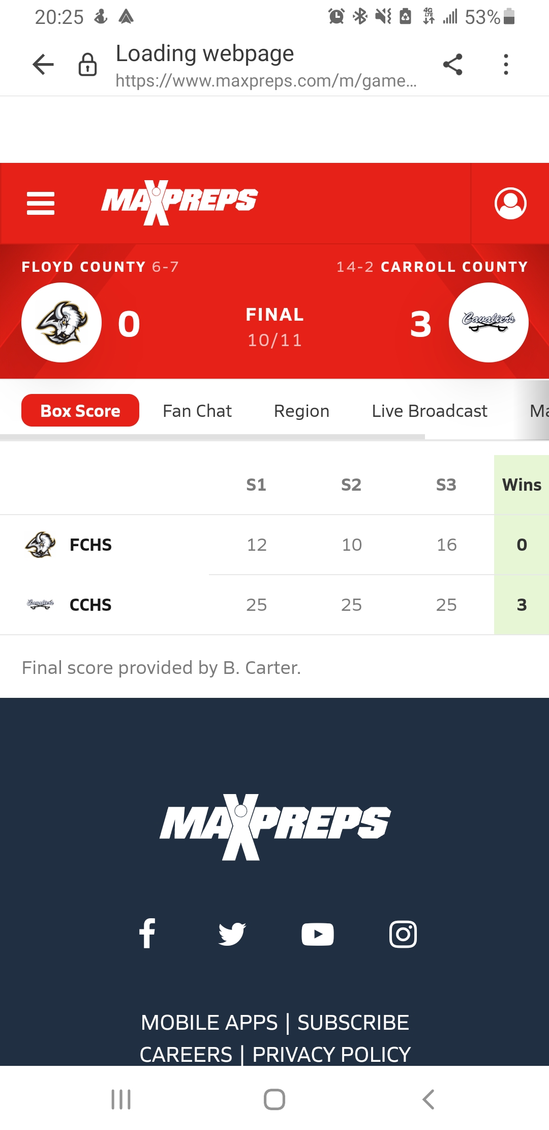 Just realized that the score can’t be updated on Max Preps because they still have the match being played tomorrow.