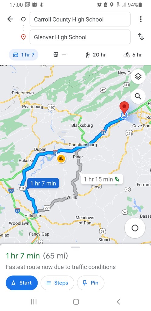 By comparison to James River and Alleghany its a short trip for CCHS to make the loop up to Glenvar but its still a healthy school bus ride for the two VB squads.