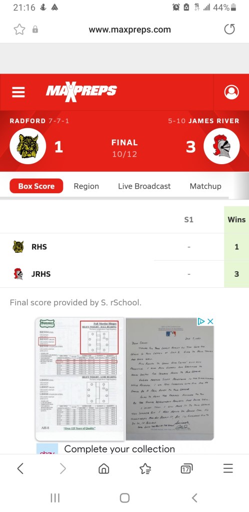 Glenvar and Carroll County moved their match scheduled for tonight was held last night 🌙 so that left a gap on the Calender for tonight so its Alleghany at Radford as a fill-in. CCHS has faced both schools one time already with the rematches slated for the next two weeks.