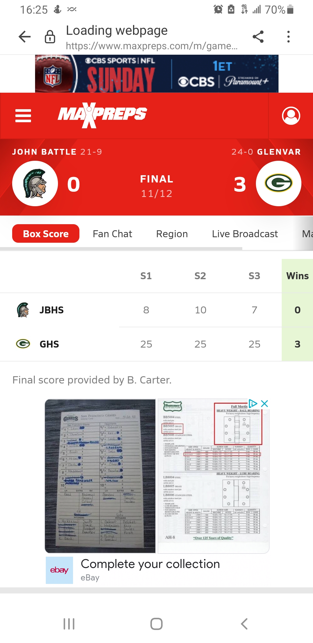 Game 2 is in the books 📚! Glenvar will be looking for the sweep now. (3:42)