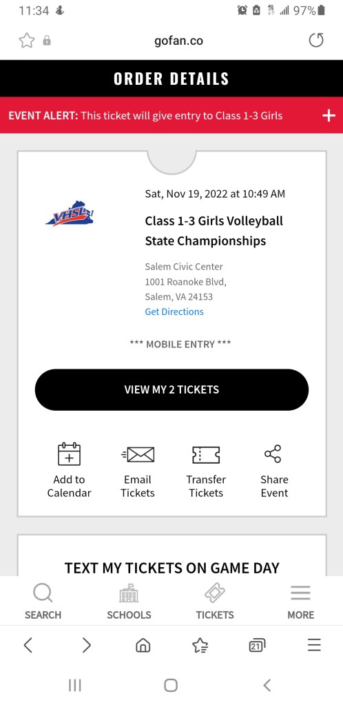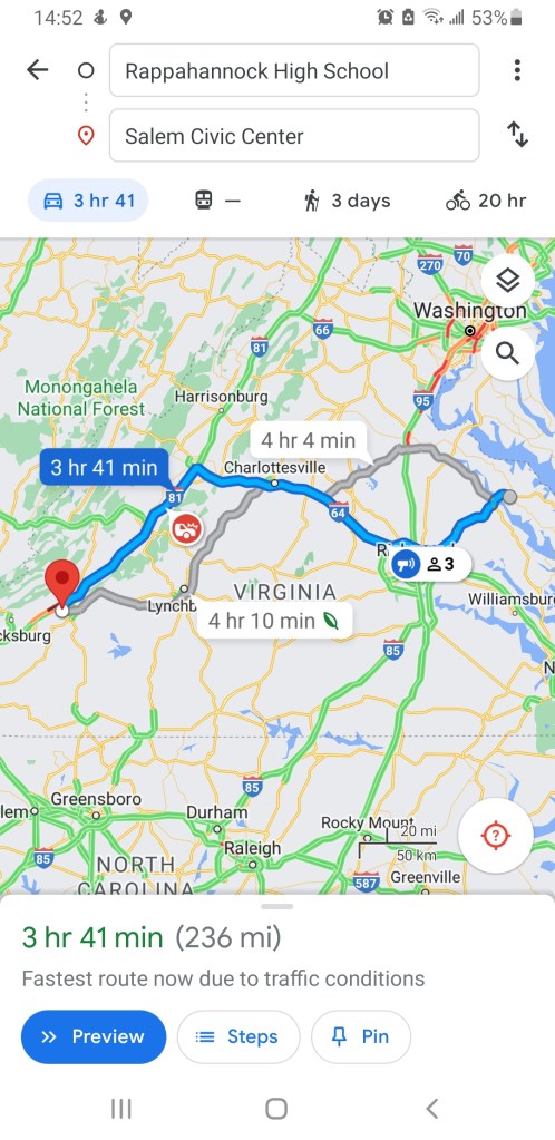 Just how good is the Volleyball 🏐 in our part of the Old Dominion ? Today there will be 3 State Championship games played in Salem and we drove past the 3 schools that we will call the Home teams.