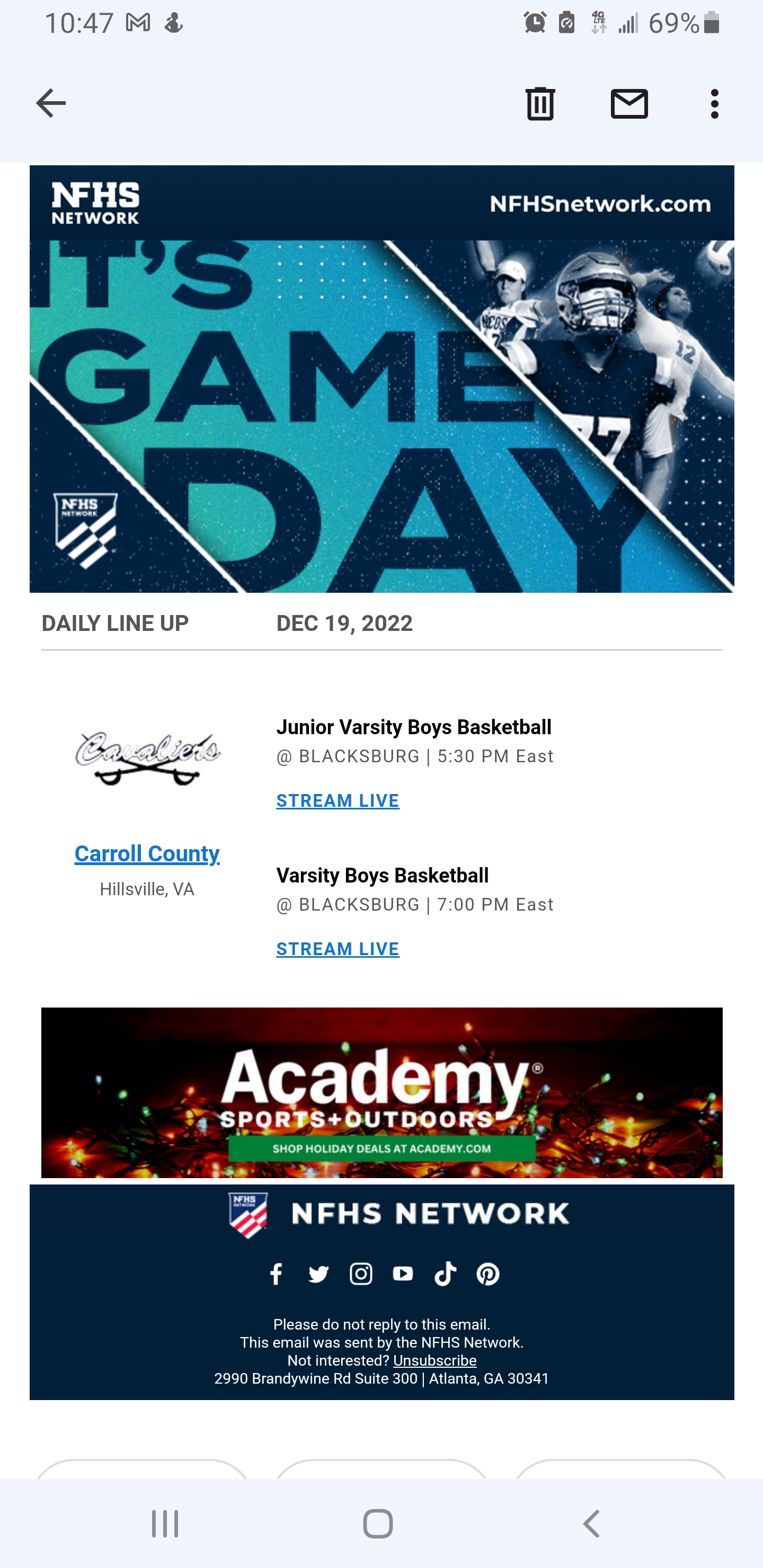 Game Day in Blacksburg produces another Varsity Win! Boys Basketball π continues their winning ways with a 62-59 victory over the Bruins in Blacksburg.