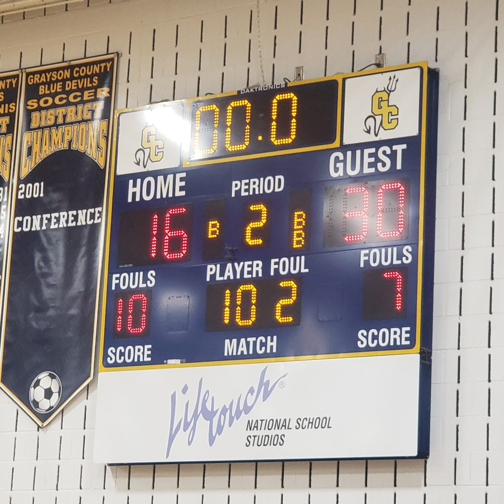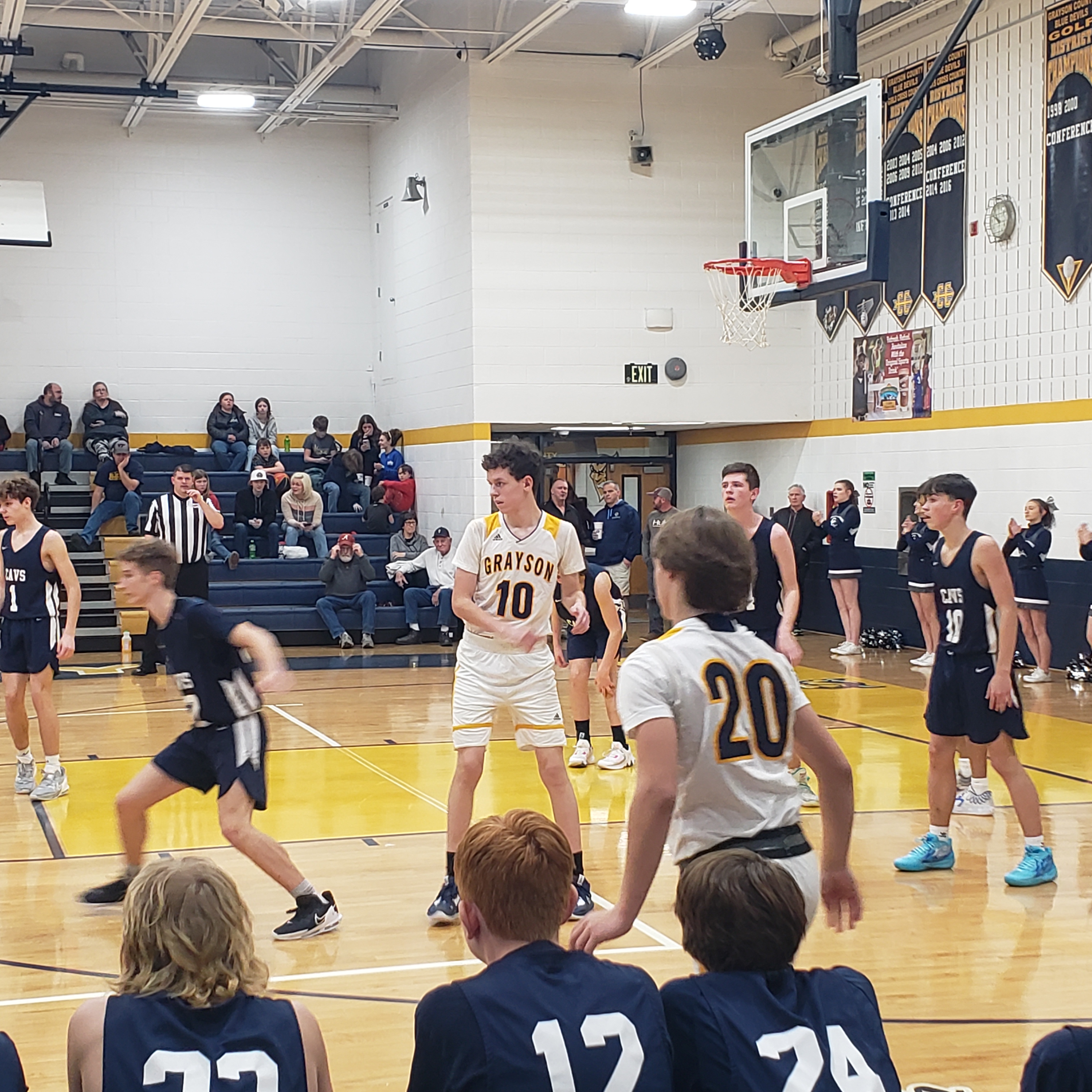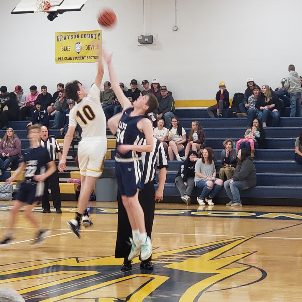 Grayson County trimmed the deficit down to 32-20 when the Cavaliers put together a 17-3 spurt to put the game out of reach. Cox started the run by going three for three from the line after being fouled on a 3-pointer and then the Blue Devils committed a violation on the inbounds play. Davis Reitzel turned in the play of the night when the Sophomore grapped a rebound and sent it in all in one motion while displaying some serious hops. Reitzel then followed up his offense with the block of the night on the other end that led to a corner 3-pointer from Ethan Richardson off of a feed from Cox.