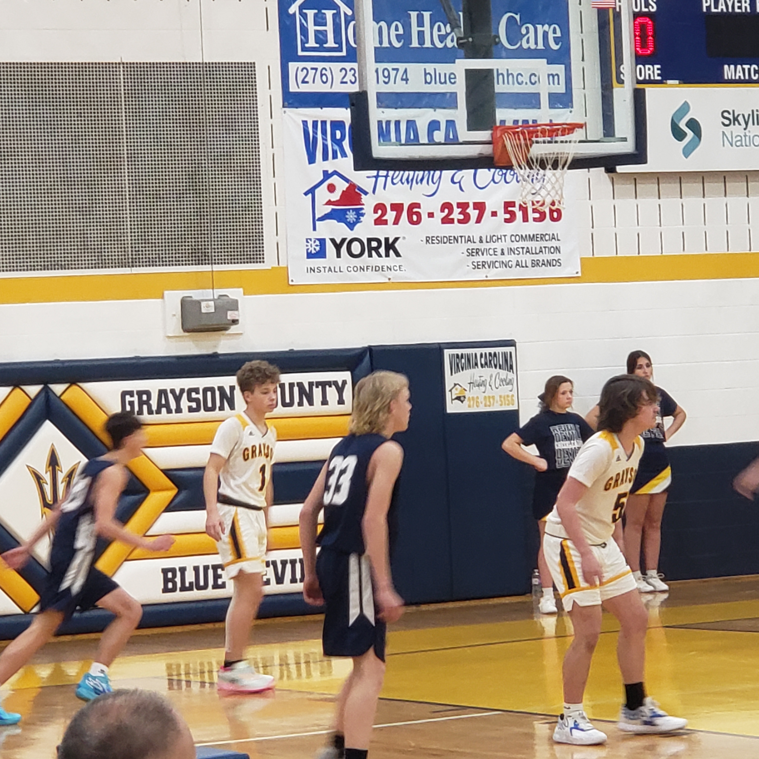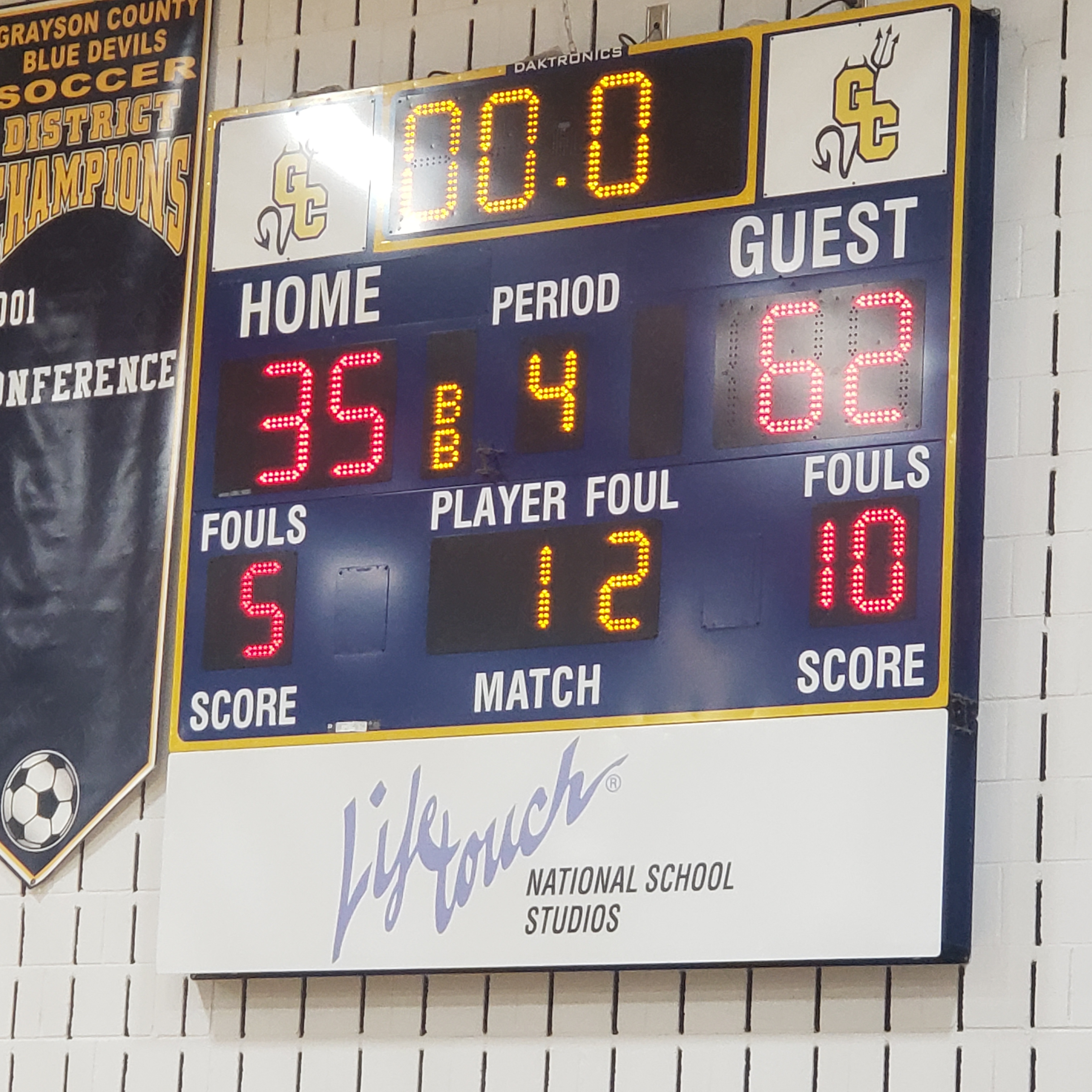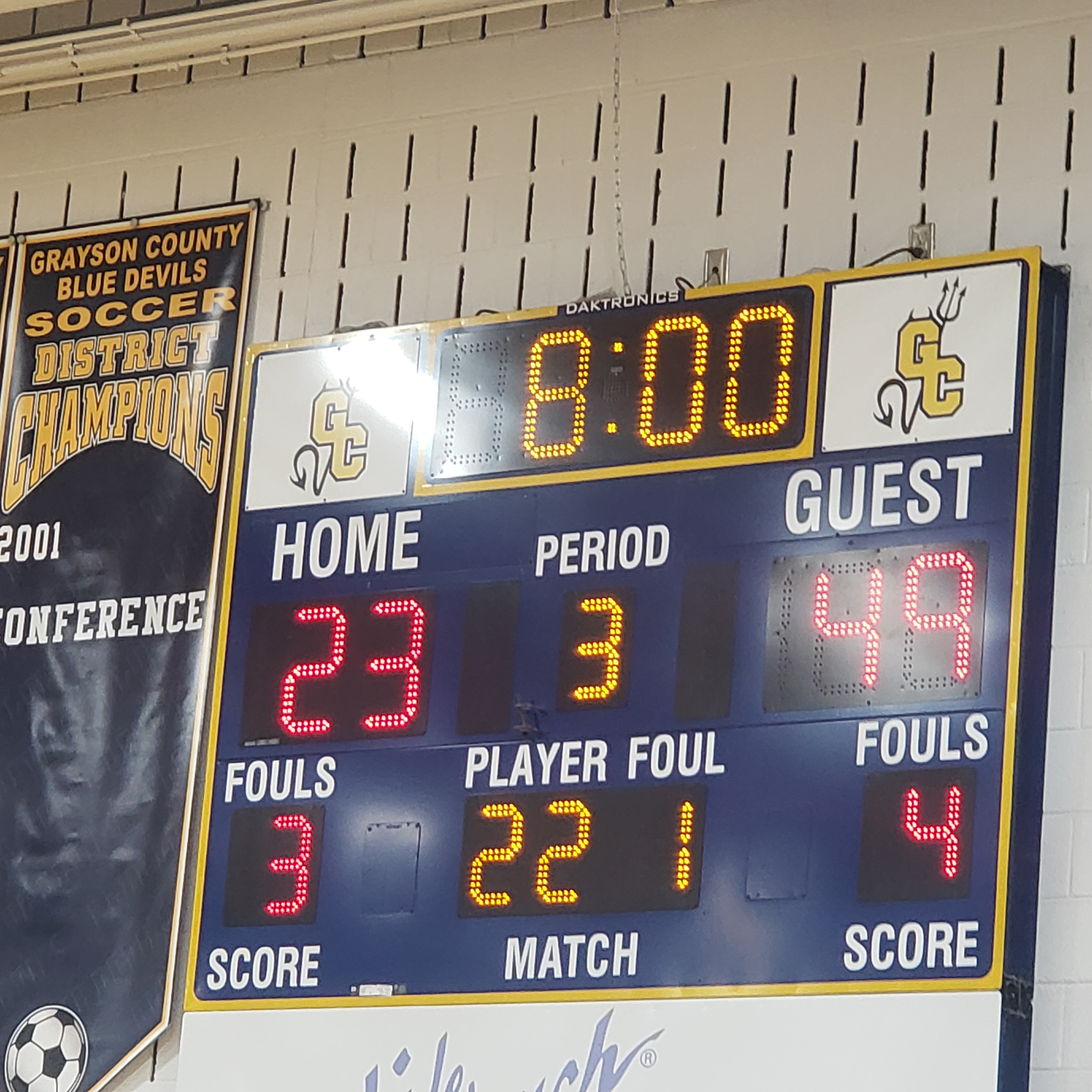 Grayson County trimmed the deficit down to 32-20 when the Cavaliers put together a 17-3 spurt to put the game out of reach. Cox started the run by going three for three from the line after being fouled on a 3-pointer and then the Blue Devils committed a violation on the inbounds play. Davis Reitzel turned in the play of the night when the Sophomore grapped a rebound and sent it in all in one motion while displaying some serious hops. Reitzel then followed up his offense with the block of the night on the other end that led to a corner 3-pointer from Ethan Richardson off of a feed from Cox.