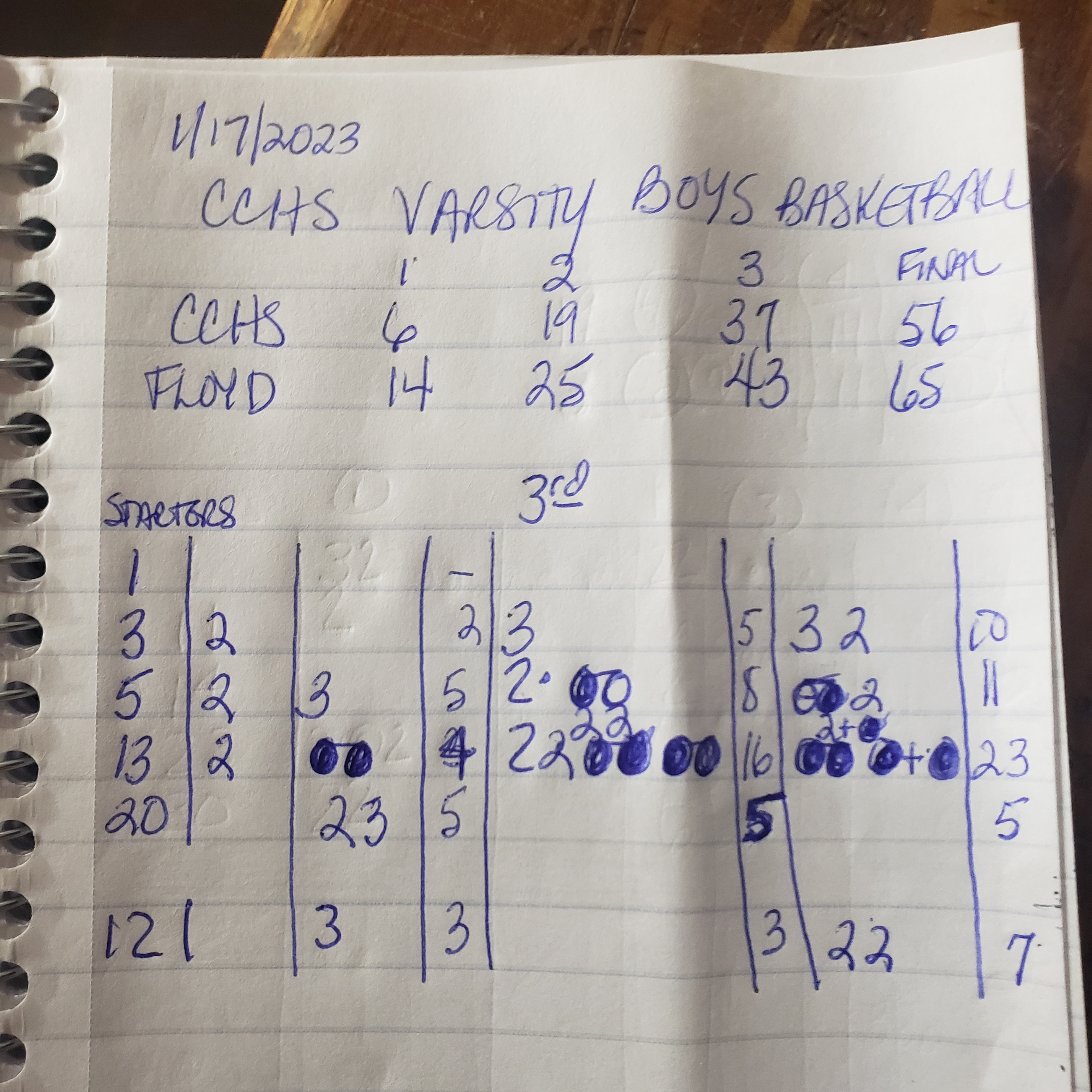 Mr. Harris captured the opening jump ball and Lin tracked the scoring so that we could offer up the results of the contest before the end of the evening.