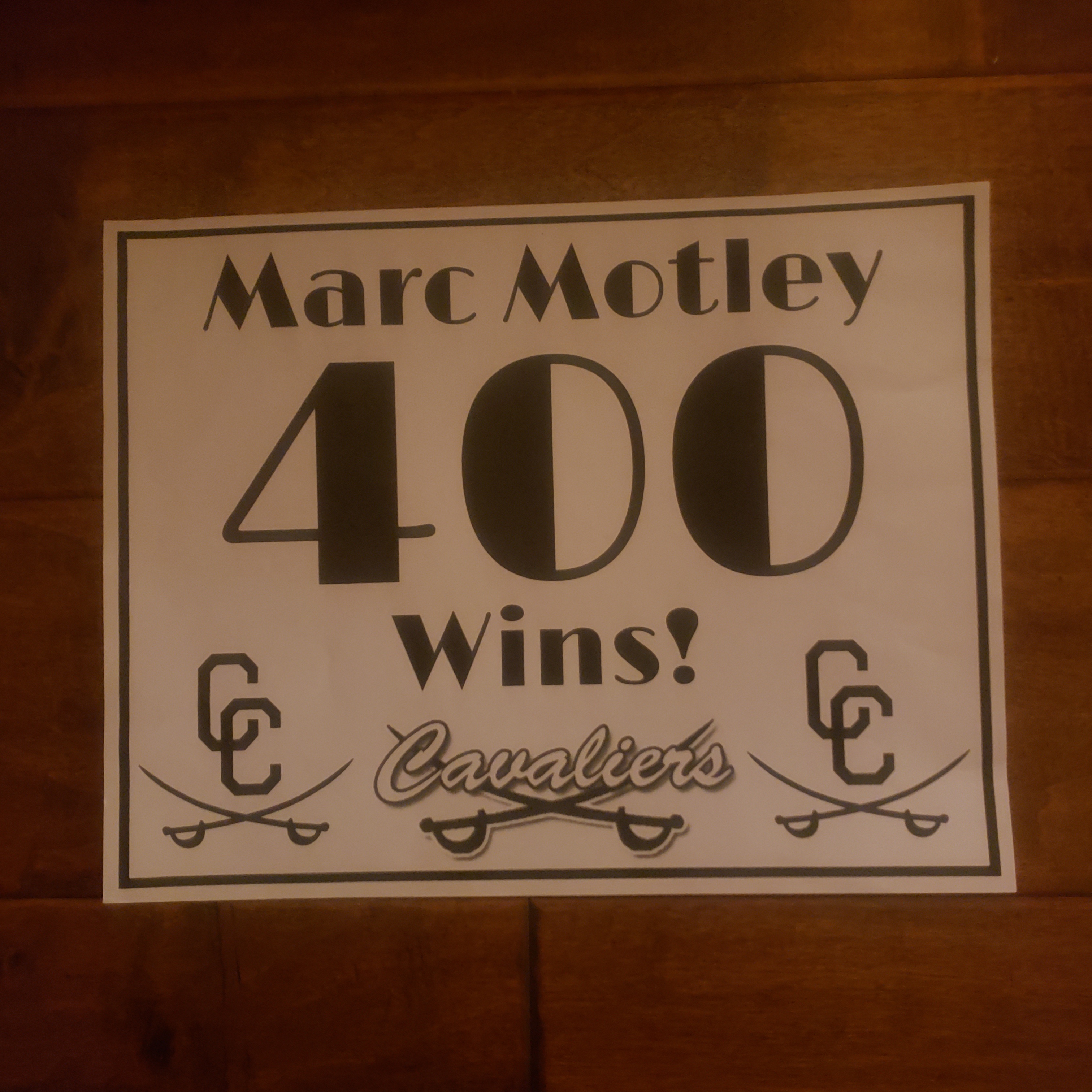 Make room for another milestone ball as Marc Motley earned his 400th victory at CCHS when his Cavaliers rolled past visiting Radford by a comfortable margin.