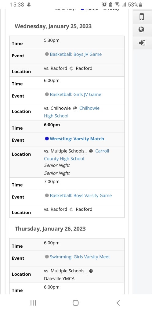 Choice #2 – fans can head over to Radford where they can watch the Boys JV and Varsity basketball π teams play at 5:30 & 7:00. This will be a rematch of games played Monday night in Hillsville.