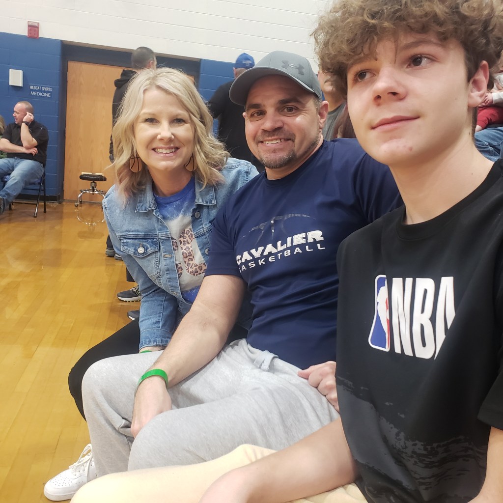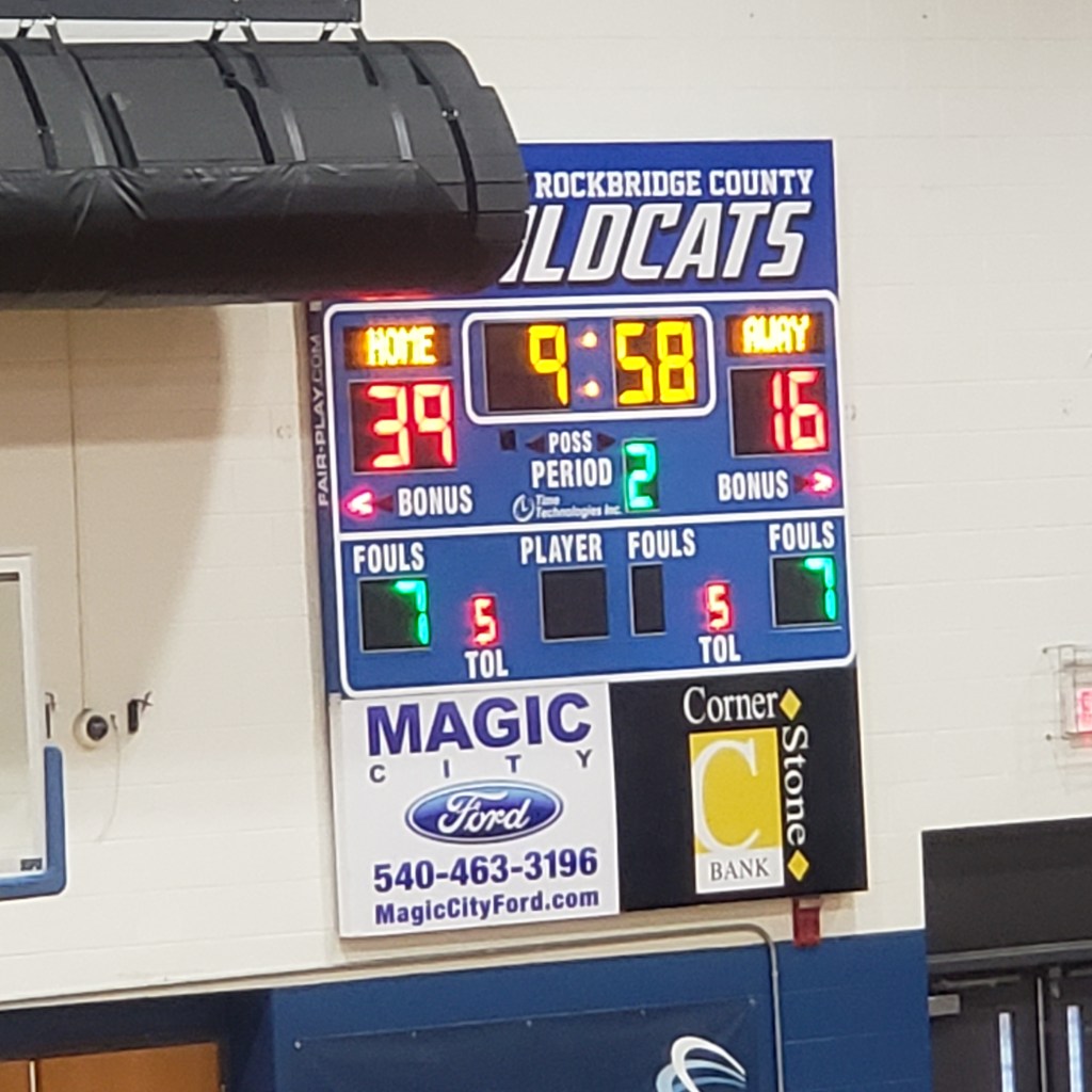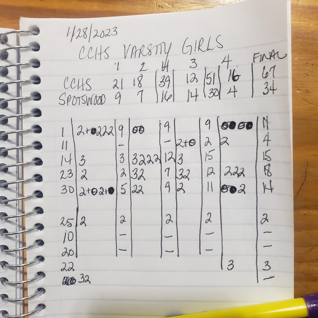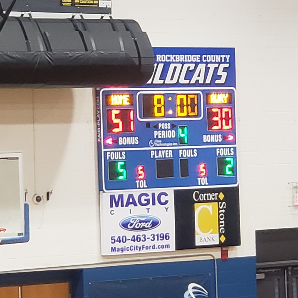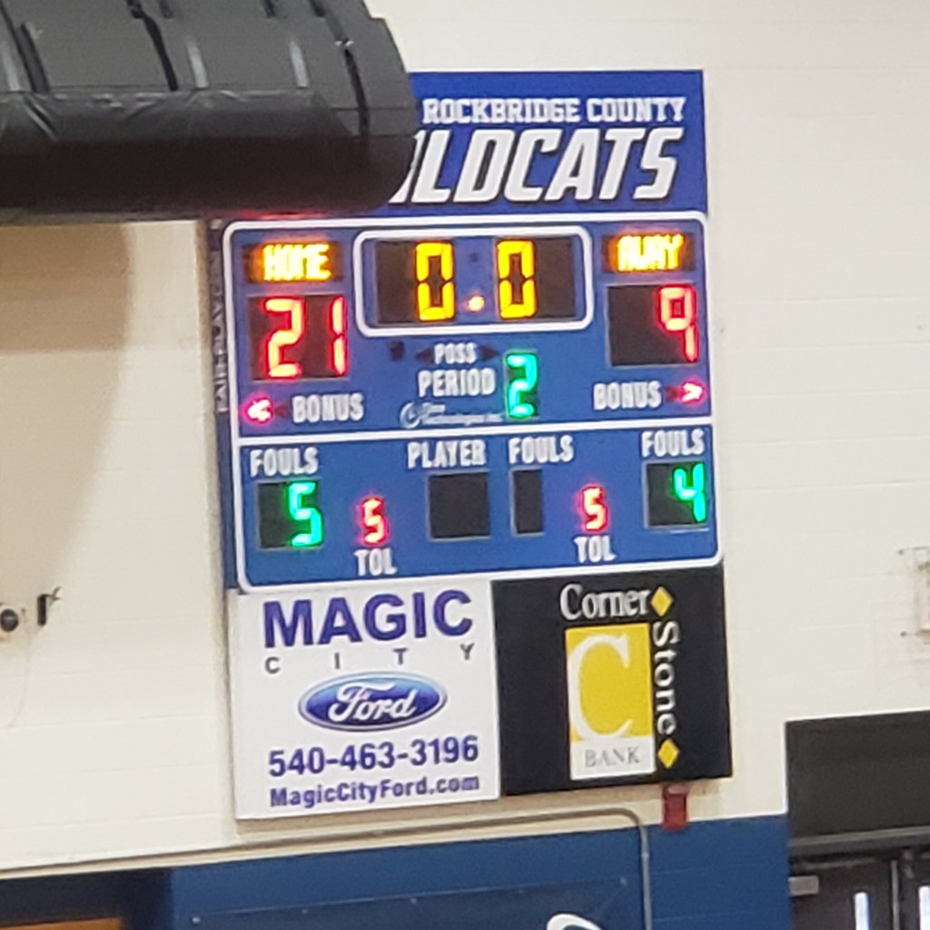 After visiting for a moment with the Easter family I took my seat in the top row next to my Wife/ Score Keeper. There was a nice couple to our right that were from Wilson Memorial and they were there to watch their Grandsons Varsity team. Their Grandson is a 6’1 8th grader currently playing for the Hornets JV and to the left of us was two elderly ( remember that I am on the cusp of 60 so if I call someone elderly its 75-80 age bracket.