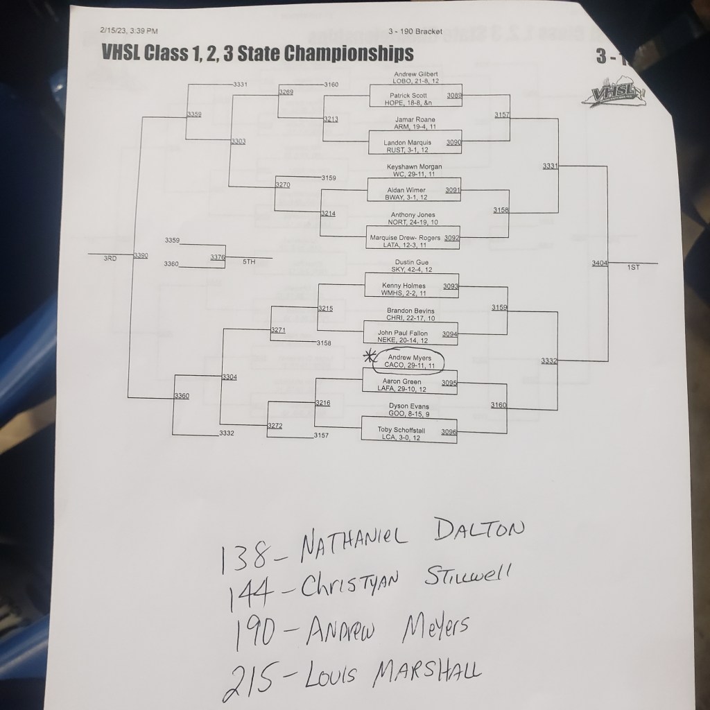 There will be a break before the final two Cavaliers have their first match at 190 & 215.
