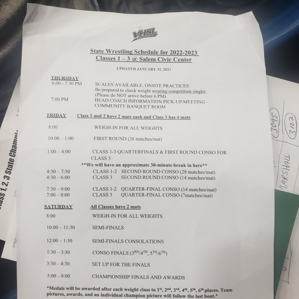 3:30pm – Our Cavaliers have completed their participation in Phase 2. Wrestling is set to resume at 4:30pm