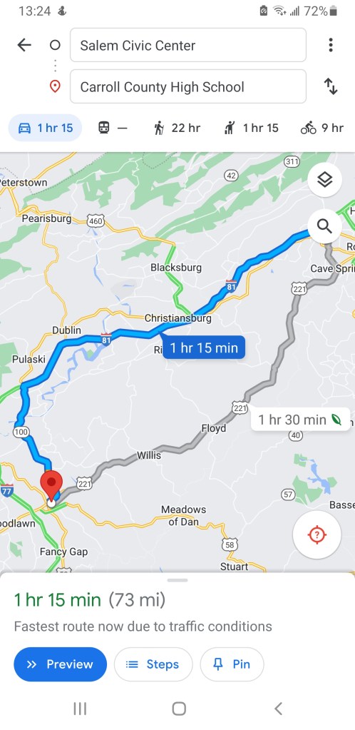 3:53 – Next stop, Laurel Fork to pack for Georgia and then a quick look see in Hillsville on the way to I-77.
