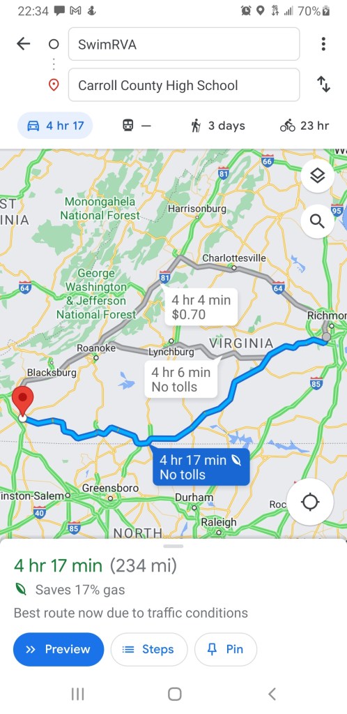 On Friday the Richardson family πͺ had a pretty tough dilemma in that Ethan was slated to be in the Swim RVA pool on the Southside of Richmond at 8am and back on the Hill for a 6pm tip of the Playoff game vs Hidden Valley.
