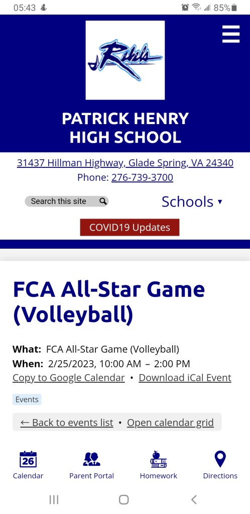 The Fellowship of Christian Athletes is hosting its Annual Volleyball All-Star event today down at Patrick Henry High School in Glade Springs, Virginia