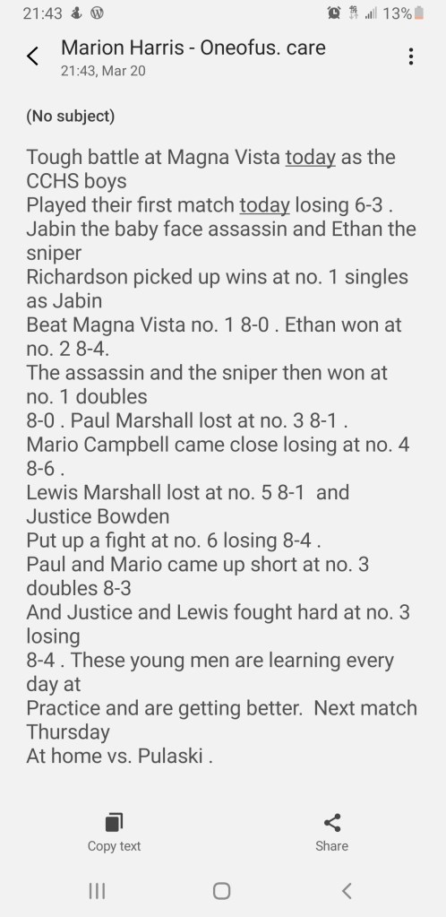 Coach – Thanks for checking in to report the score!