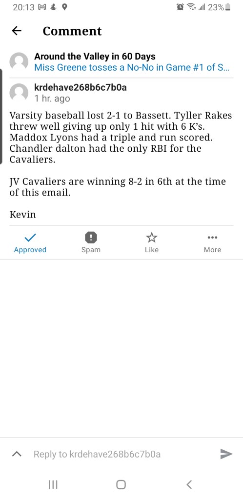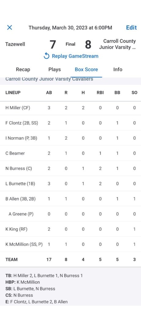 Coach Nester (after Softball practice) and I ( after Tennis πΎ coverage) both ended up at the JV Baseball βΎοΈ game. That part is only relevant because the photos π· above were a combination of the two of us.