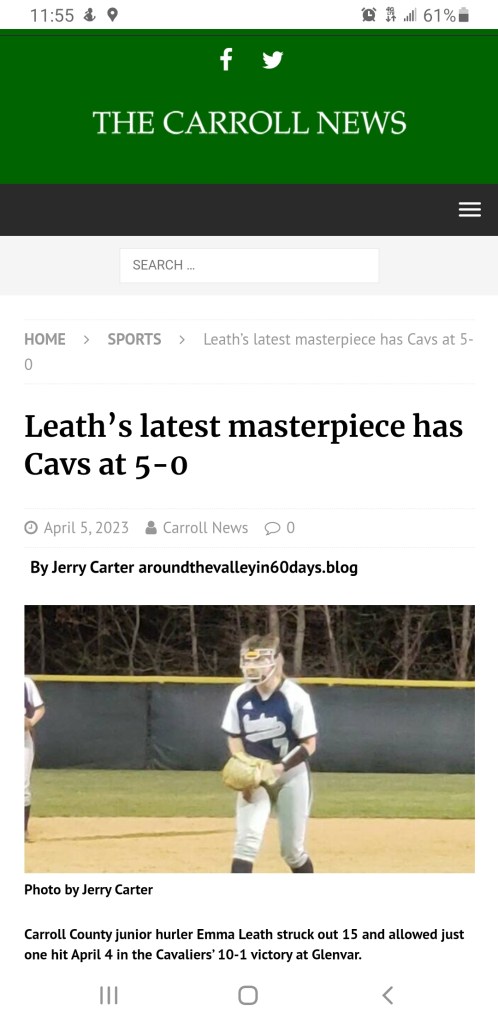 The rest of my day will be spent in Bluefield, WV with our College Baseball βΎοΈ team but I will keep an eye π on the inbox π₯ for anything Carroll County Sports related that comes my way.