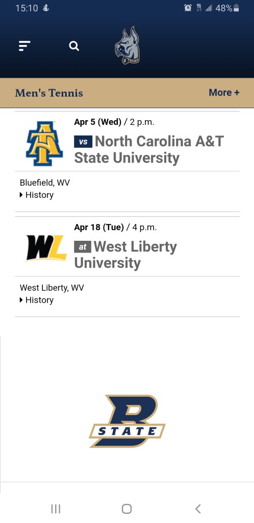 File this one under Dumb Luck as I beat the our Baseball βΎοΈ team here and stumbled upon two NCAA Tennis πΎ matches – One Men’s and One Women’s, between host Bluefield State University and visiting North Carolina A & T.