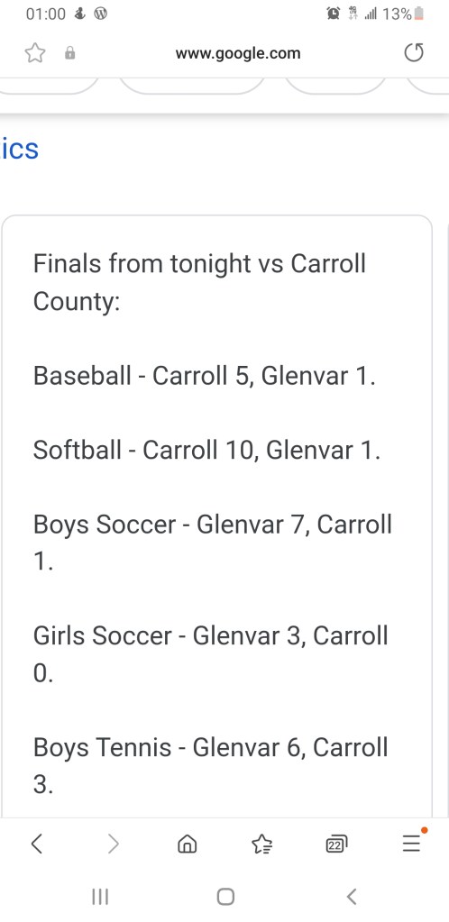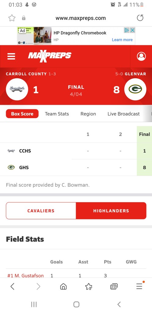 First half Glenvar scored the first two goals on some good throw ins and some miscues from the Cavaliers. Great teams take advantage of mistakes from others teams and that is how the first two goals were scored. After the 2 goals things settled down and both teams had chances but the 1st year keeper from Carroll Lindsey Gardner played like a seasoned veteran with 12 saves for the game. The Cavaliers right before halftime had a great serious of passes and their shot on goal went off the upright and the rebound was saved by Glenvar to take the game to half with the score 2-0.