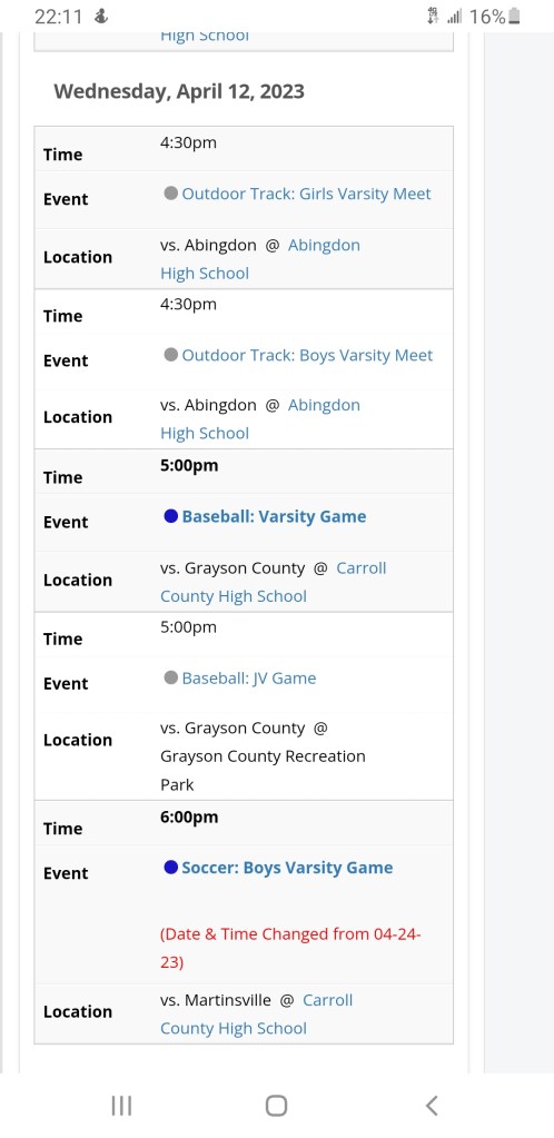 Tomorrow is Both Track Teams, Both Baseball βΎοΈ Teams and Varsity Soccer β½οΈ ( 5 Total contests). Abingdon, Grayson County and Home are your sites.