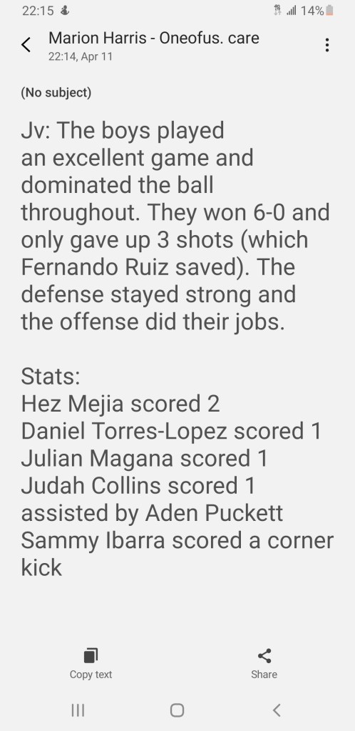 Coach Johnson checked in with his JV Report from the Pitch for which we are grateful π.