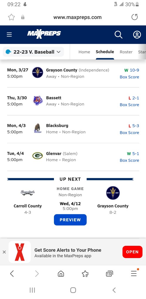 Track Coverage from Radford, Baseball βΎοΈ over Glenvar, Boys π¦ Tennis πΎ and 2 Softball games are inside Alan Worrell’s Newspaper π° this week!
