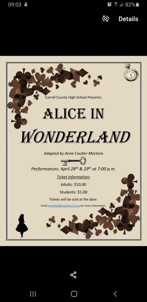 More from the Mailbag – Thanks to Mr.Josh for passing the Information along! School π« Play on April 28th & 29th