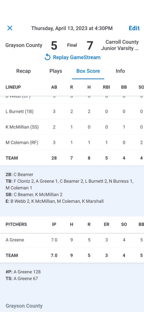 Having access to the Game Changer official Box Score not only looks sharp but clarifies the Official Scoring for the contest.
