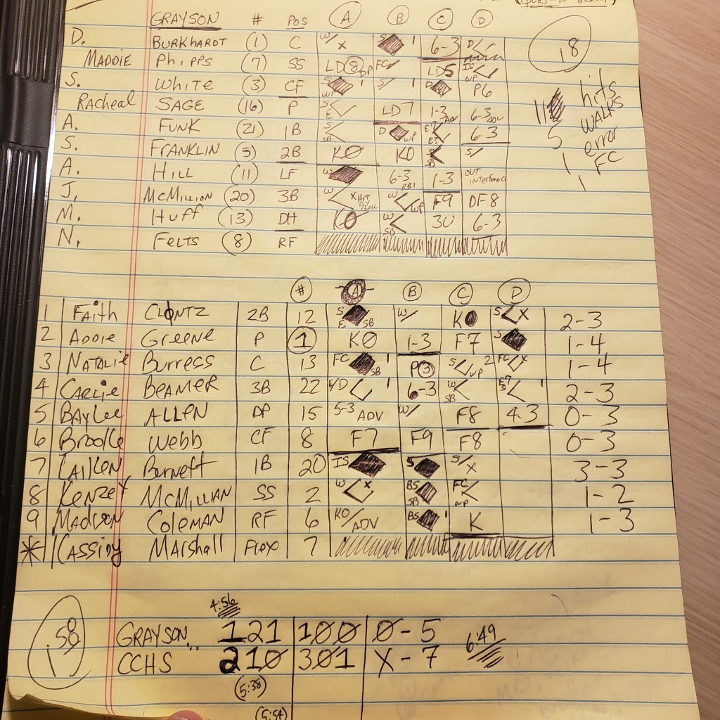 Some notes from my Notes π that are Unofficial by comparison – Burnett is shown as officially 2 for 3 as she reached base leading off the bottom of the second with what I had as an Infield Single.