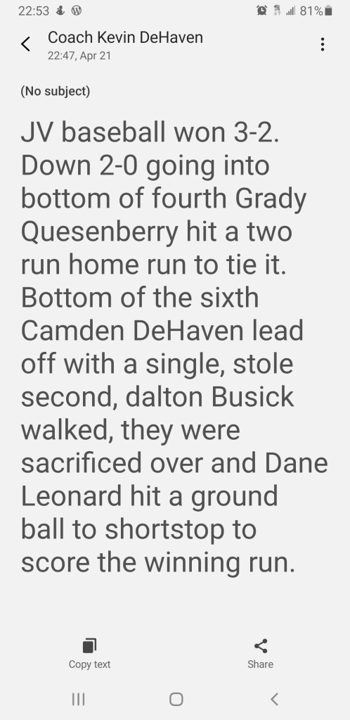 JV Baseball βΎοΈ wins 3-2