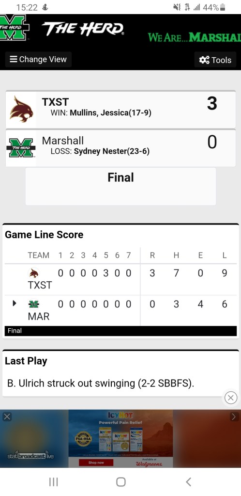 Miss Nester goes the distance, allowing just one earned run but the Herd need to rally in the Home half of the 7th inning.