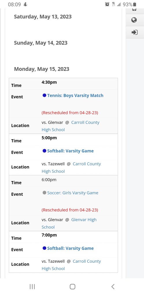 @ Cavalier Park Varsity Softball will play a double header against Tazewell with the action getting underway at 5pm. Tennis starts at 430 while Soccer begins at 6pm