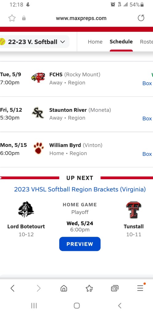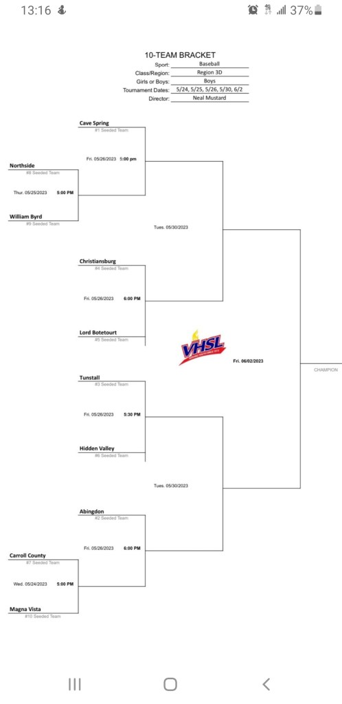 #8 – Northside vs #9 William Byrd (Thur)
